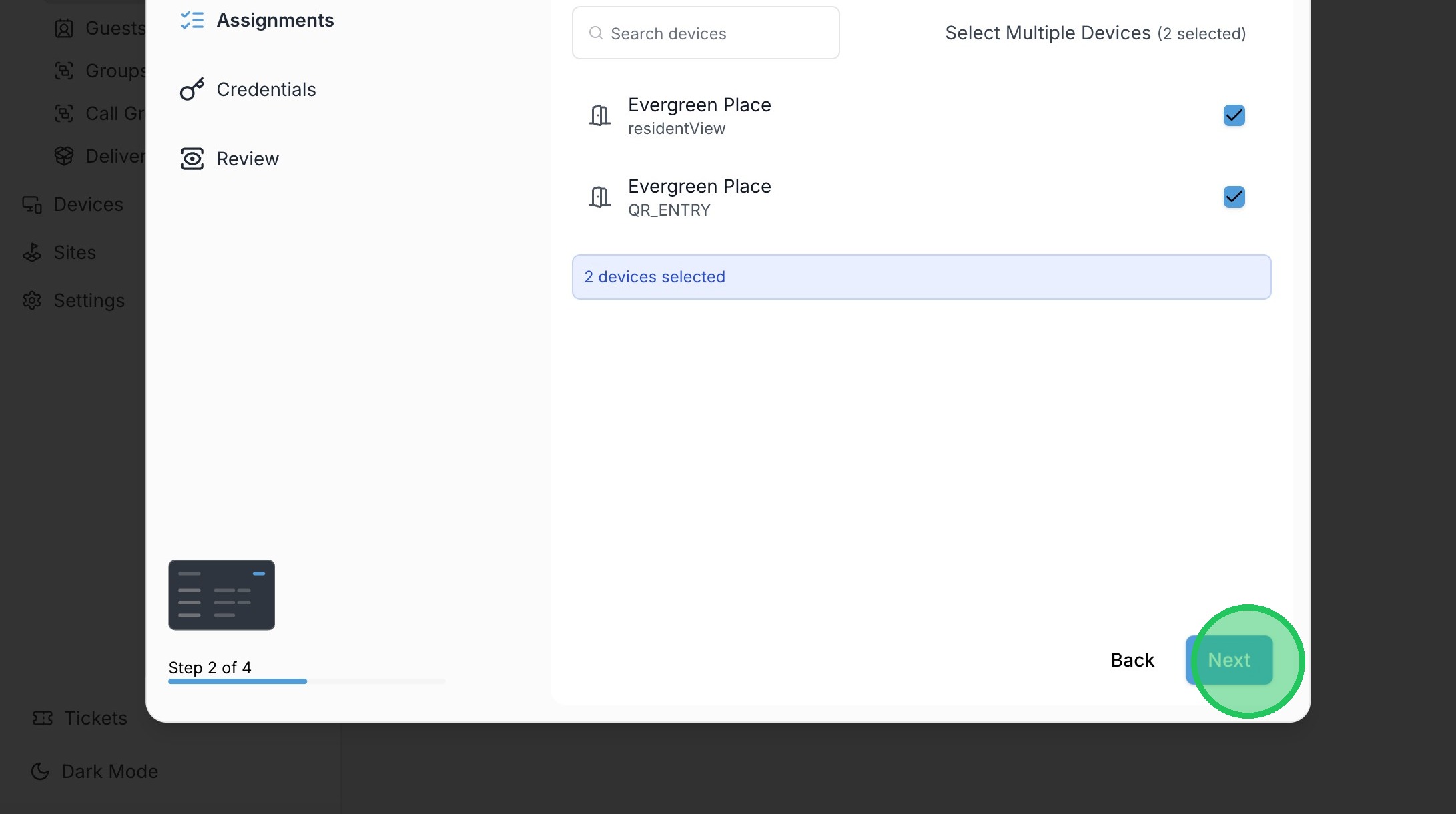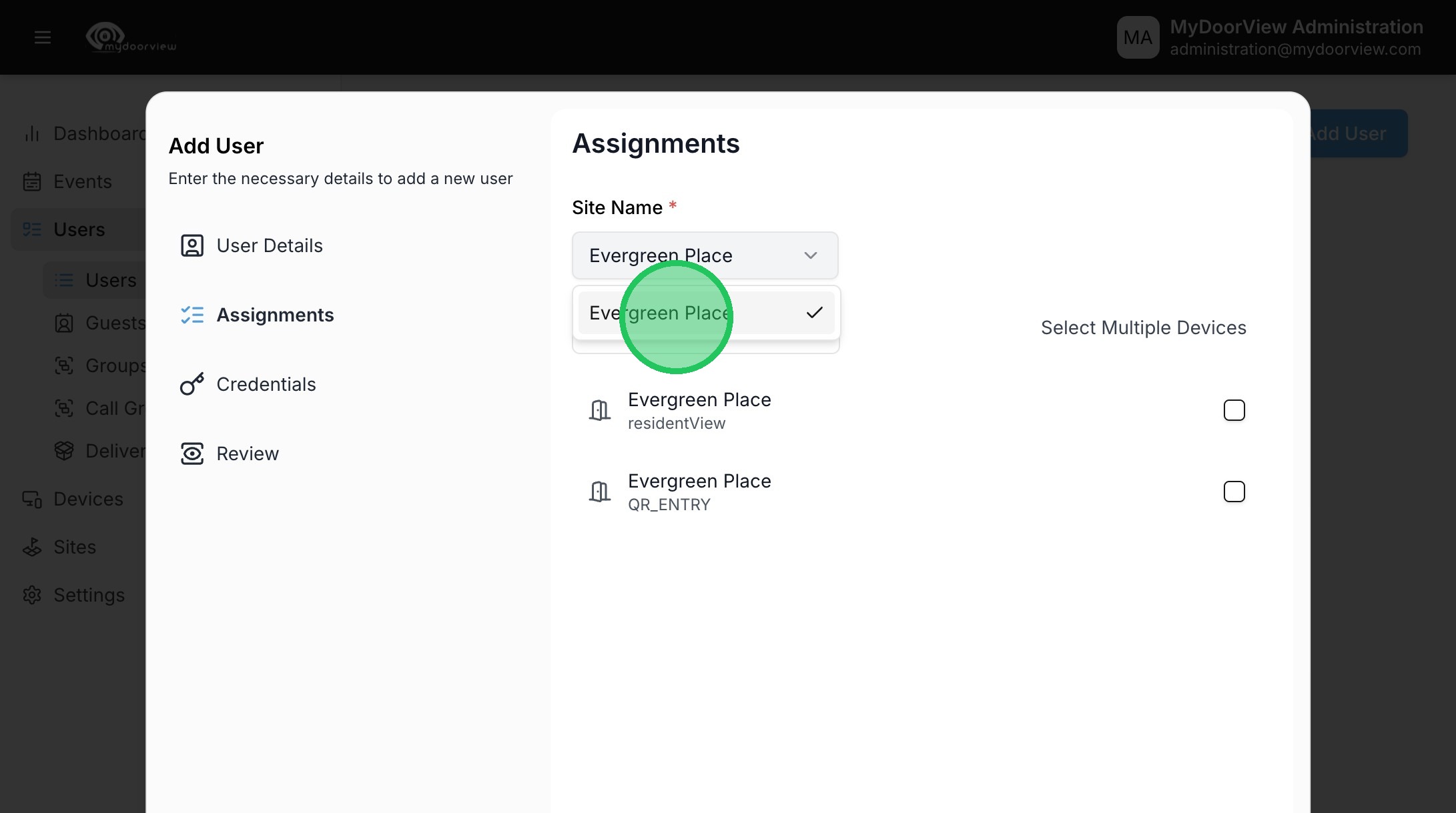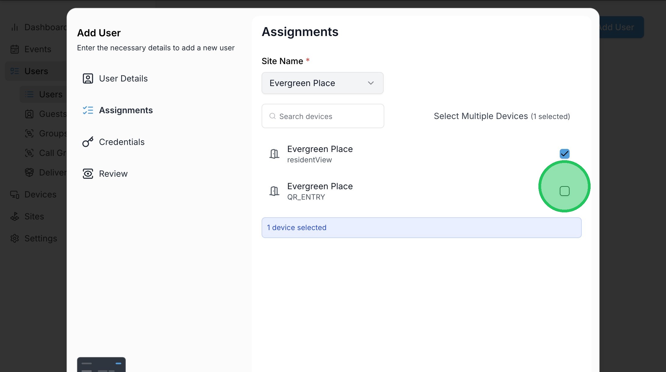 9. Click to enable devices they should have access to. Note that users can be hidden from the directory of the intercom after they're granted access, if desired.