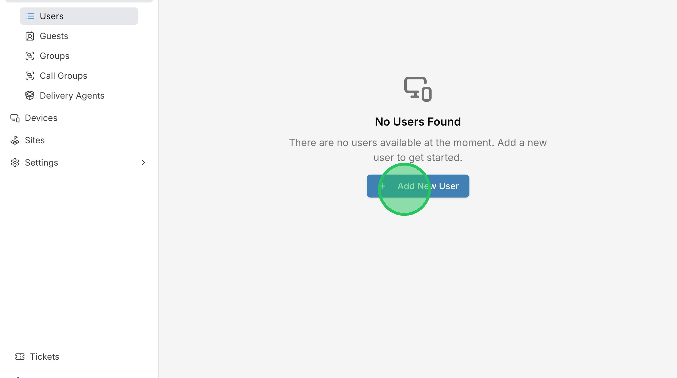6. Click "Add New User" alternatively, users can be imported with the import button using the template.