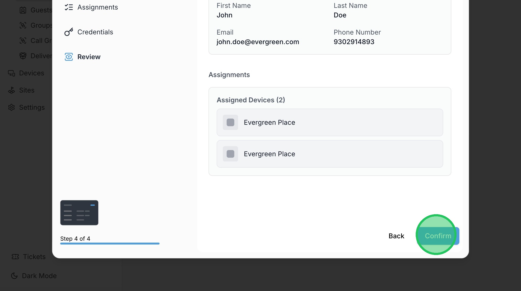 17. Click "Confirm"